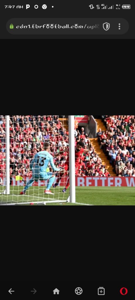 Guglielmo Vicario got a hand on Salah’s header, but was unable to keep it out with the Italian seemingly falling backwards.