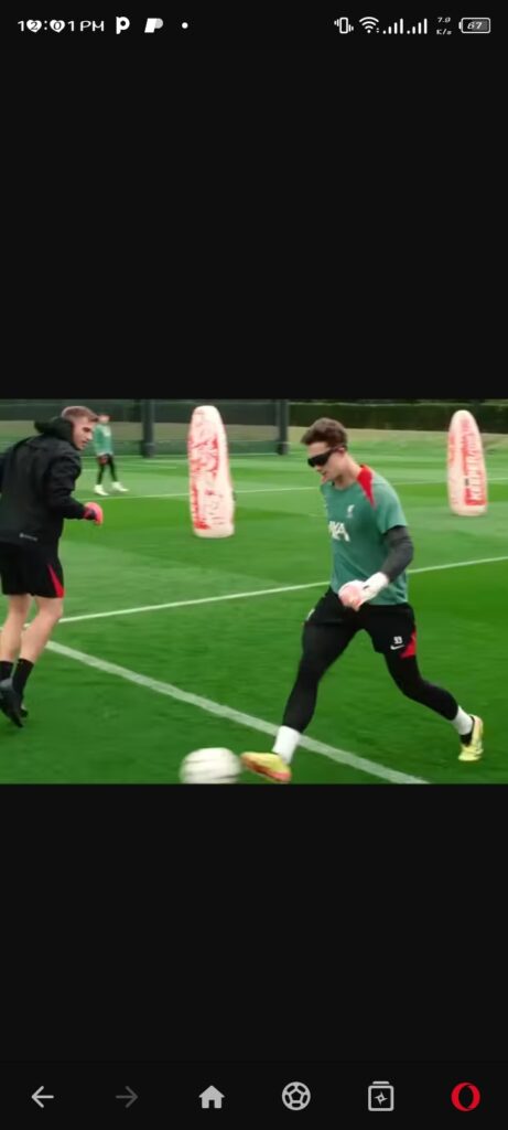 Last week, the club’s YouTube channel posted a brief video of players returning to training ahead of the 2024-25 Premier League season. A standout moment featured Liverpool’s goalkeeper drills, where new goalkeeping coach Fabian Otte instructed 21-year-old Marcelo Pitaluga to use American-designed Swivel Vision training goggles. These goggles restrict peripheral vision, compelling users to enhance their visual tracking and rely more on audio cues.