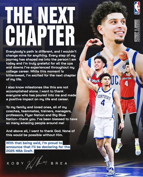 Basketball fans — brace yourselves. The college basketball world just got rocked by a heartfelt and game-changing announcement from none other than Koby Brea. The sharp-shooting Dayton standout just dropped the mic on his collegiate career — and he’s not going quietly.