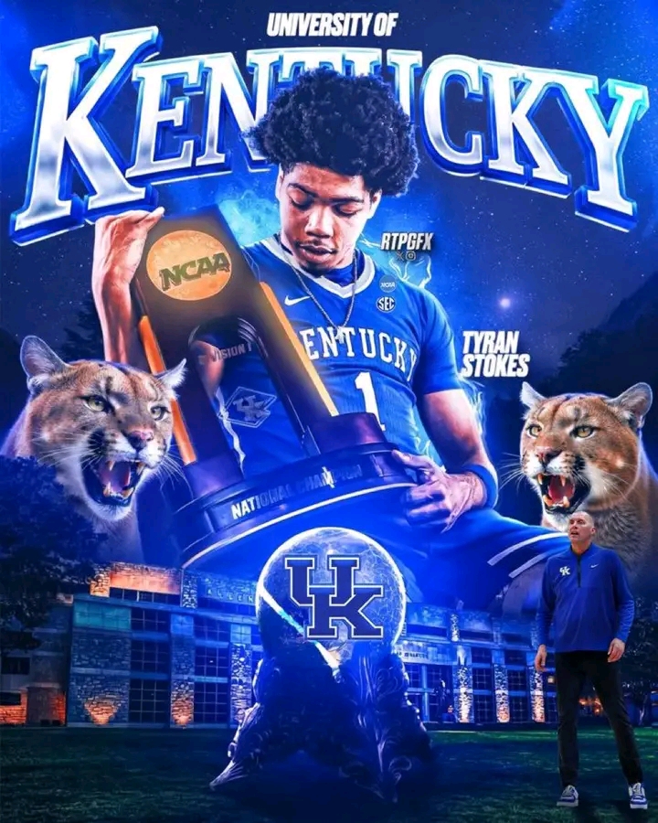 Adding fuel to the fire is a viral image circulating online that depicts Stokes in Kentucky blue, holding an NCAA championship trophy while surrounded by Wildcats imagery. The graphic, widely shared among fans, has only intensified excitement and belief that momentum may be shifting toward Lexington.